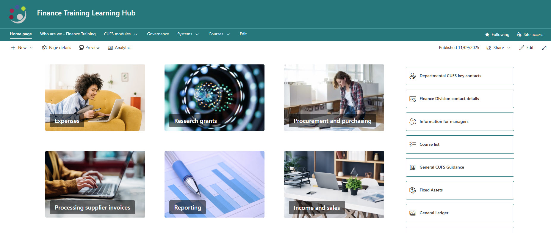 All the training guidance is now hosted on the Finance Training Learning Hub